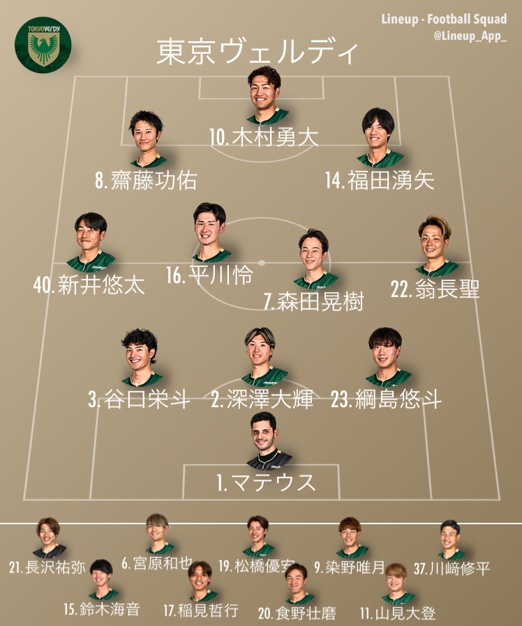 ヴェルディはルヴァンで勝利していい流れ、逆に相手の京都はルヴァンで敗れ、しかも退場者も発生。主力に怪我が多く、10番の福岡も今節は出場停止と満身創痍。シンプルな状況だけ見ればヴェルディが優位。