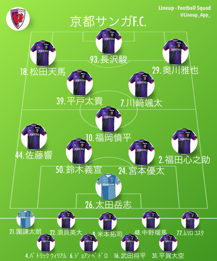 スタメンは基本的には先週までのリーグ戦のメンバーをベースに、2戦連続でゴールを決めてる勇大か、染野か。やっぱりここは勇大かな、相手が去年までレンタルで所属していた京都ということもあり。勇大自身のプレーも別にめちゃくちゃ良いというわけではないけど、ある意味で気分がそのままプレーに出るところはあるので、連続ゴール中という流れの中でスタメンで送り出したい。