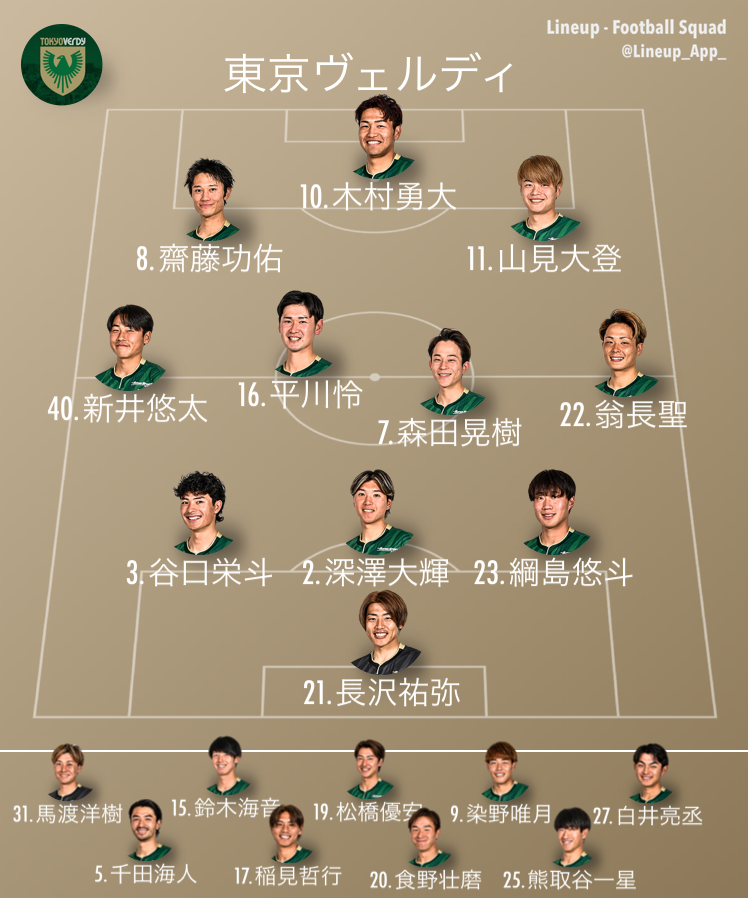 東京ヴェルディのスタメン予想