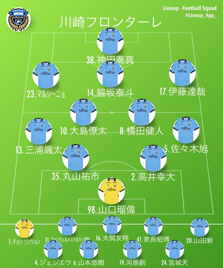 (46’)神田 奏真(out)→山田 新(in)