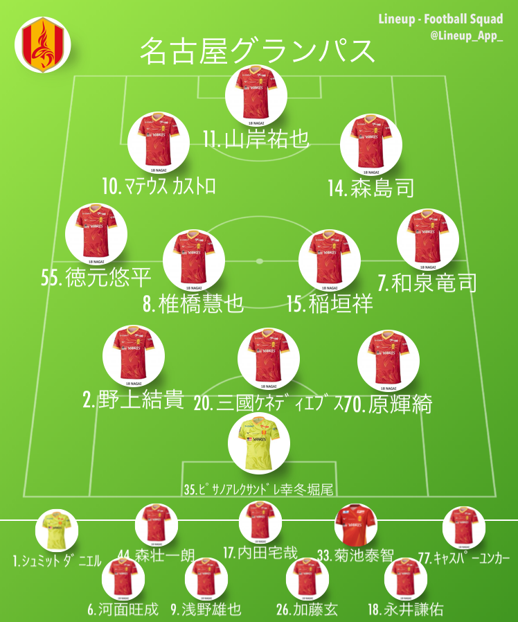 名古屋グランパスの前節のスタメン