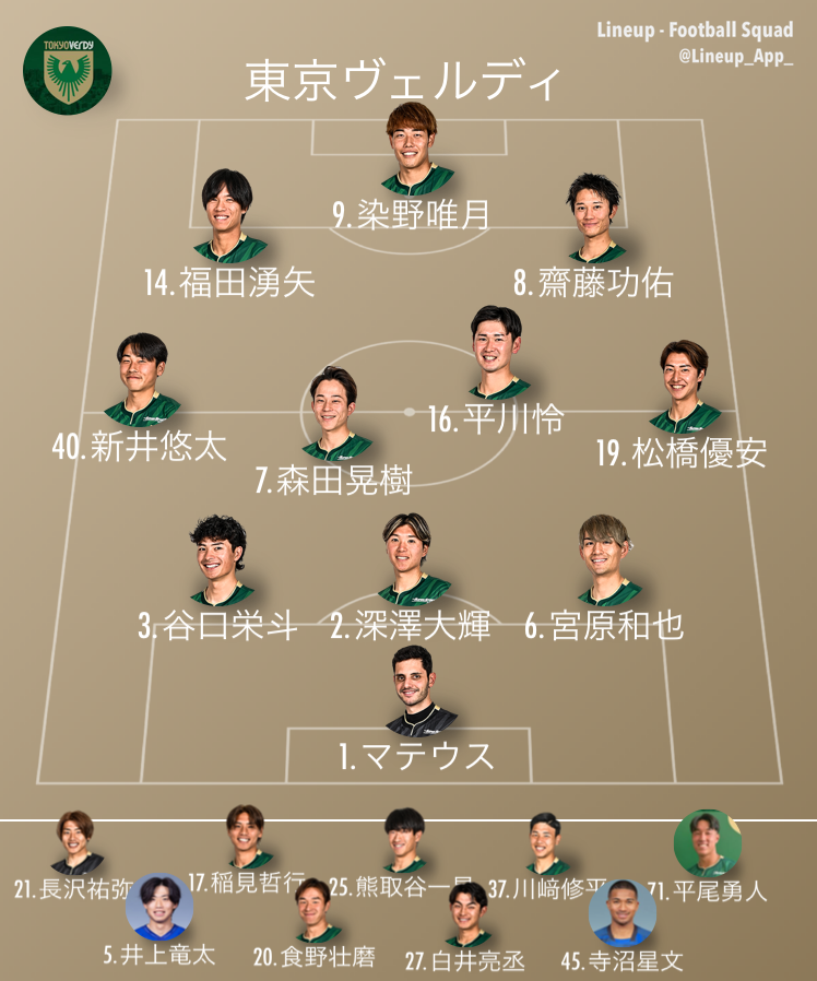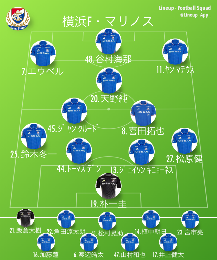 (46’)ジャン クルード(out)→渡辺 皓太(in)
