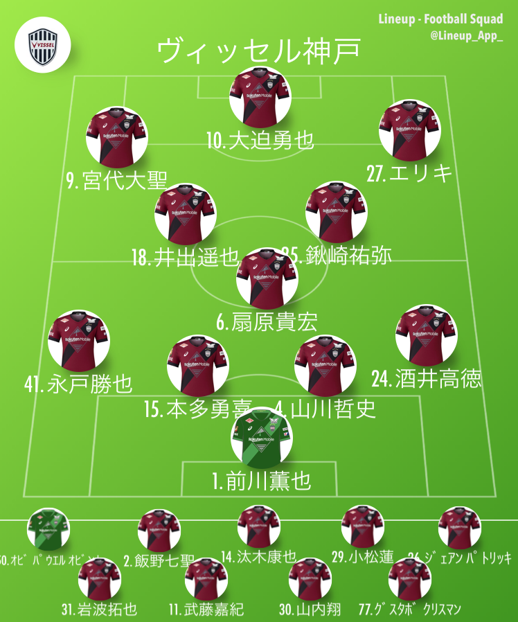 (76’)大迫 勇也(out)→小松 蓮(in)