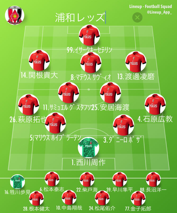 浦和レッズの前節のスタメン