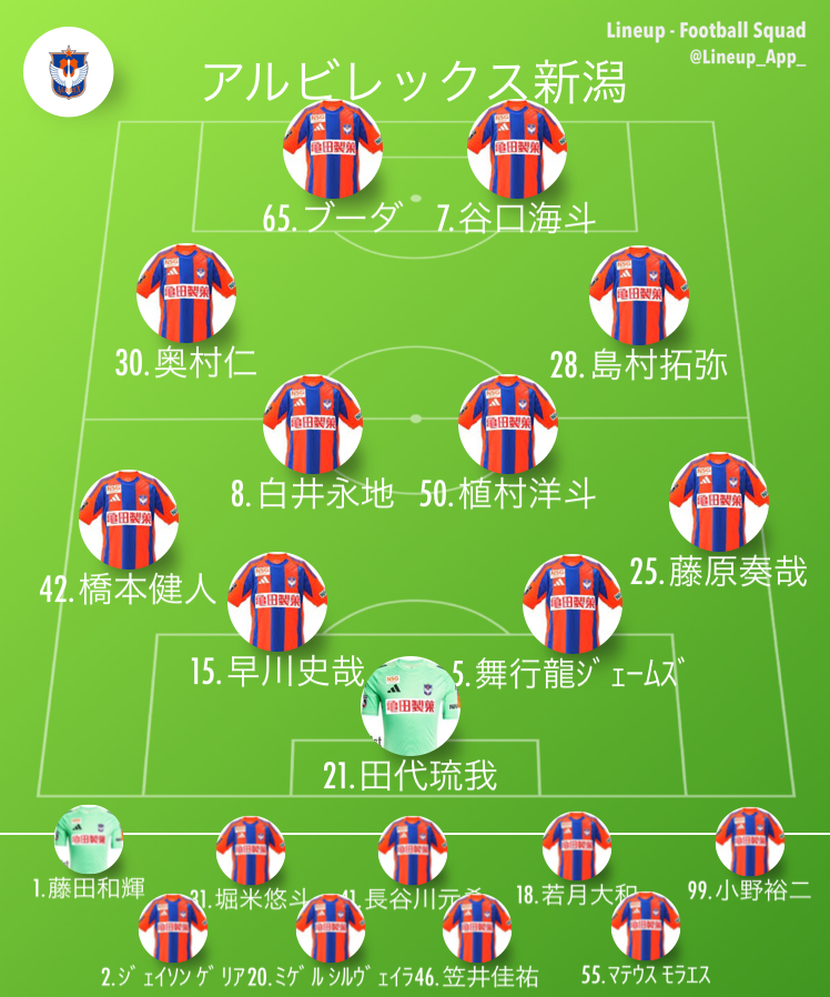 (80’)ブーダ(out)→若月 大和(in)