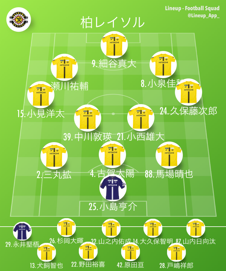 柏レイソルの前節のスタメン