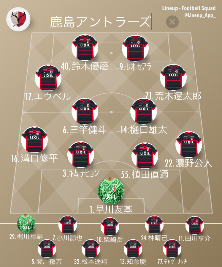 鹿島アントラーズの前節のスタメン